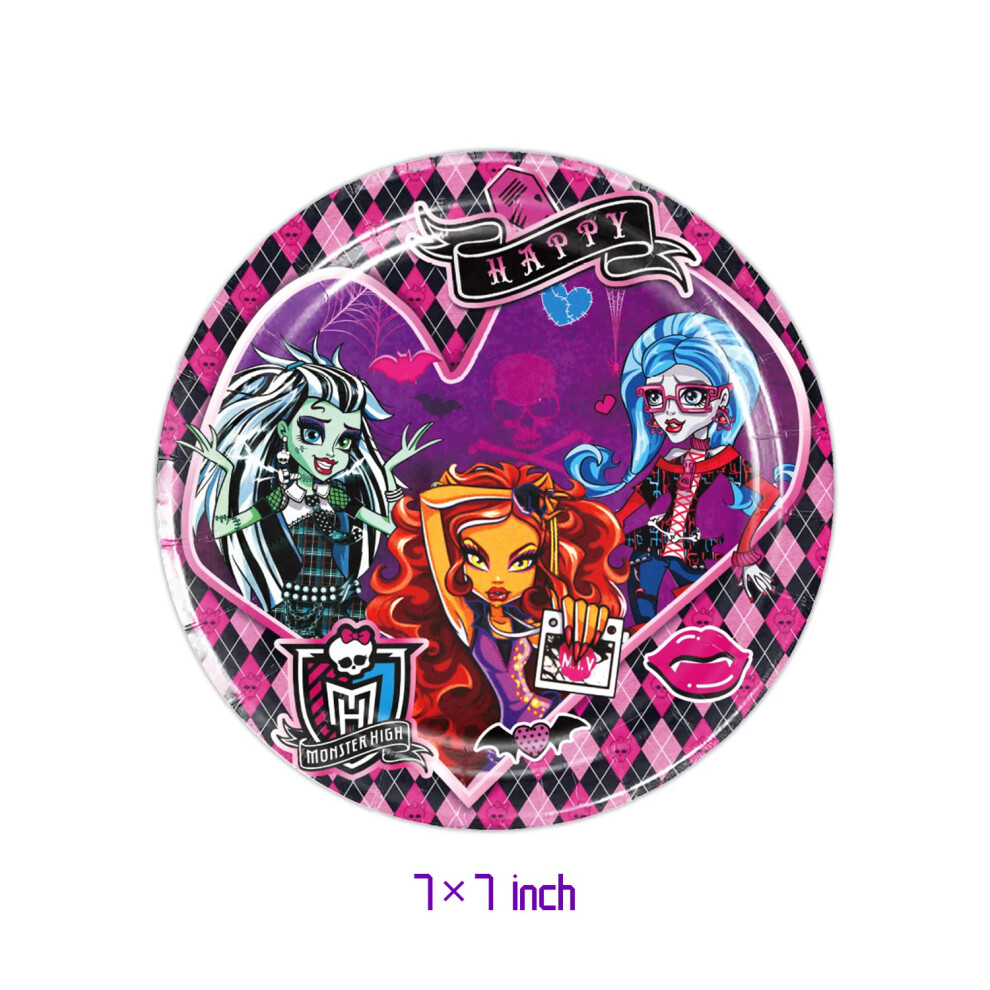 (10pcs 7inch plate) Monster Doll Spirit High School Birthday Party Supplies Balloon Tablecloth Disposable Tableware Set Kids Baby Shower Party Deco