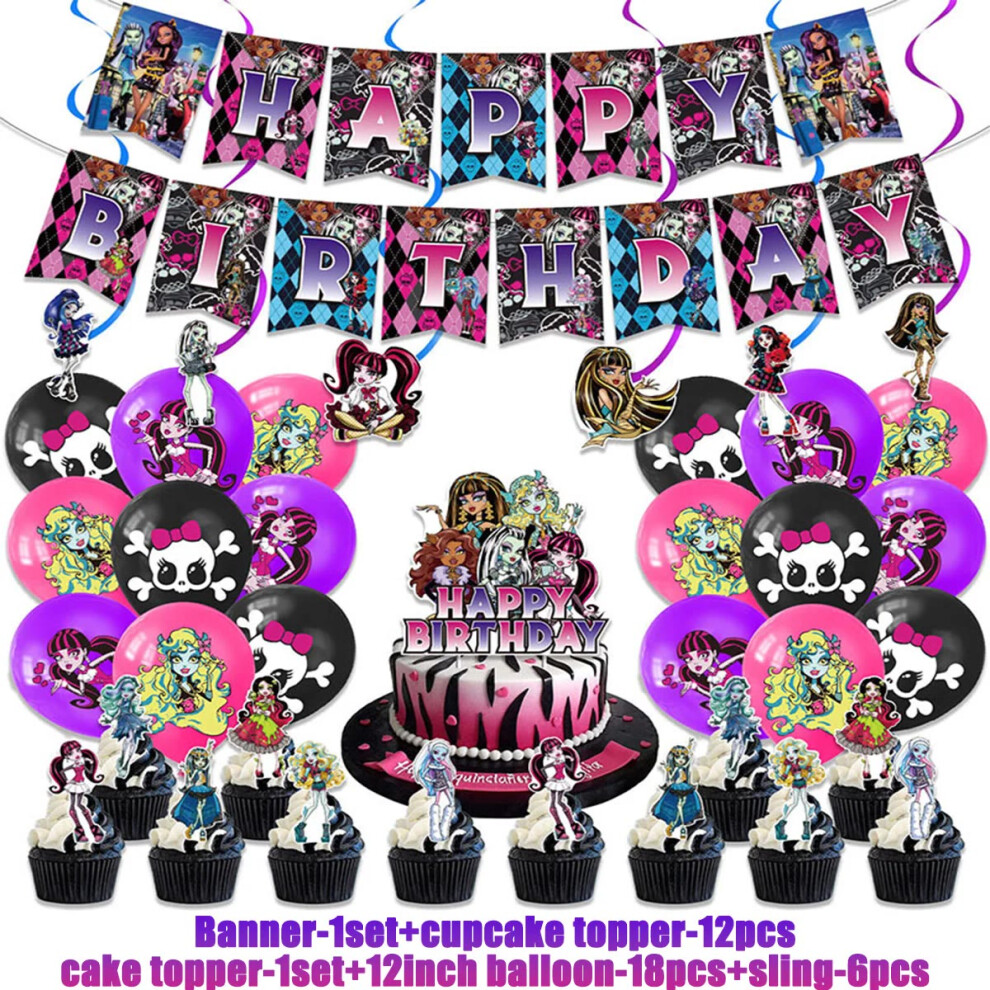 30pcs Monster High Theme Party Decorations Includes Balloons Banner Cake Topper