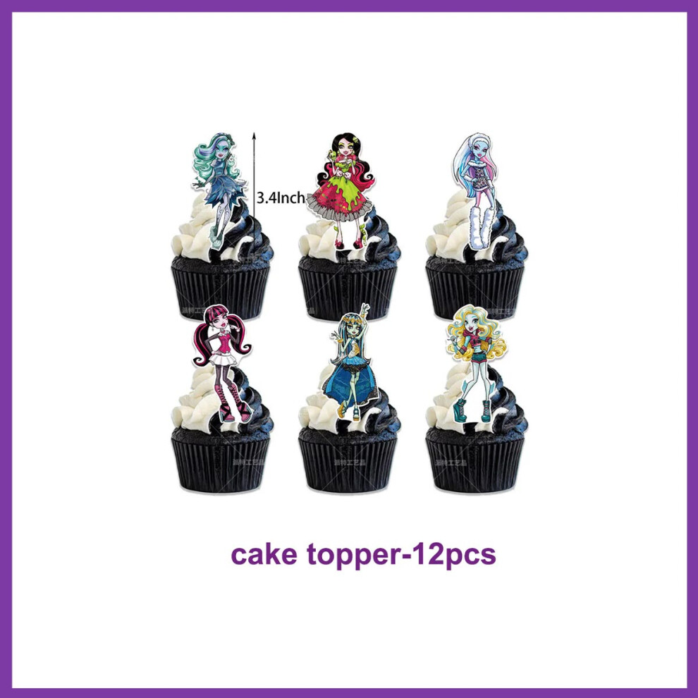 (cupcake topper-12pcs, Other) Cartoon Monster Spirit High School Theme Birthday Party Disposable Tableware Doll Balloons Plates Cup Child 1st Birthday