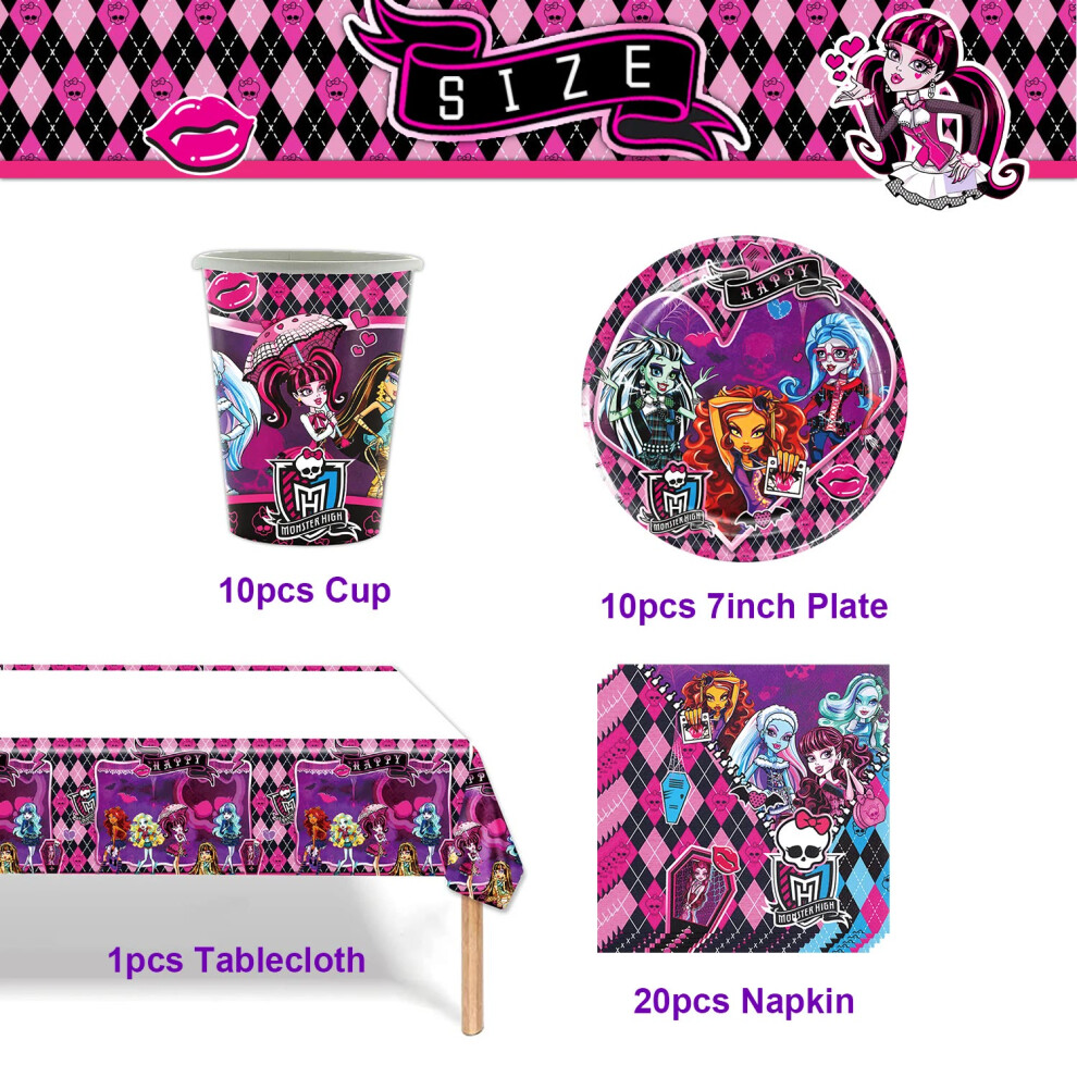 (81pcs) Monster Doll Spirit High School Birthday Party Supplies Balloon Tablecloth Disposable Tableware Set Kids Baby Shower Party Deco