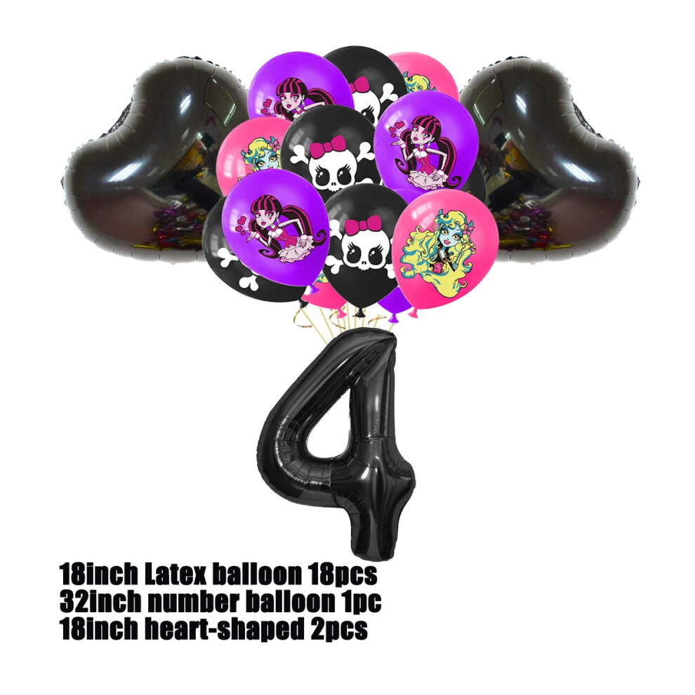 30pcs Banner Cake Topper Balloons Set For Monster High Themed Party Decorations