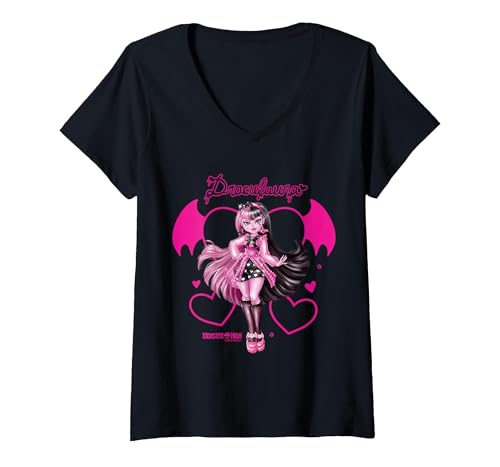 Women's Monster High Alumni - Draculaura Heart Wings V-Neck T-Shirt, Black, Large