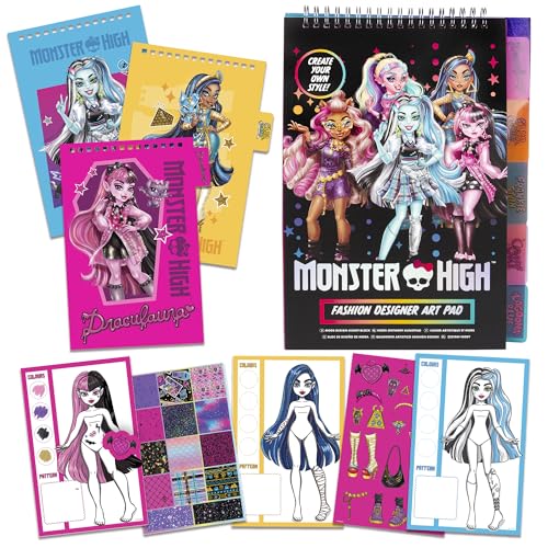 abeec Monster High Fashion Designer Art Pad - Monster High Dolls Art Pad - Contains Designer Pages and Stickers - Stocking fillers for Girls - 6 Year Old Girl Gifts
