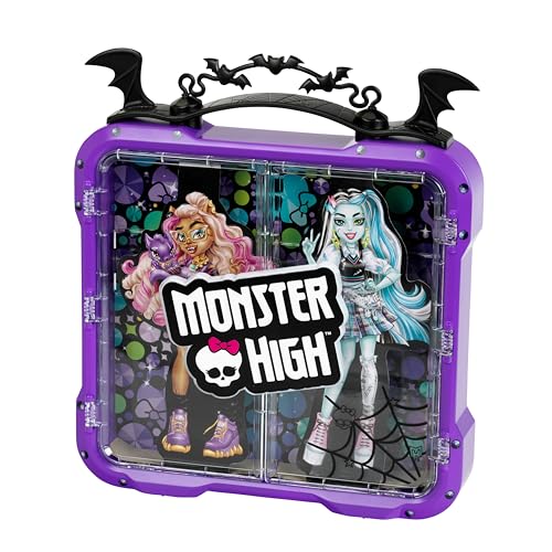 Polly Pocket Monster High Playset with 3 Micro Dolls & 10 Accessories, Opens to High School, Collectible Travel Toy with Storage, HVV58