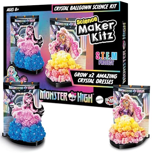BLADEZ Monster High Toyz - Make Your Own Draculaura Crystal Gown Kit - 2 Card Dolls, Crystal Formulas, Stands & Backgrounds - Kids Toy STEM Learning - Create Sparkling Dresses with Real Crystals