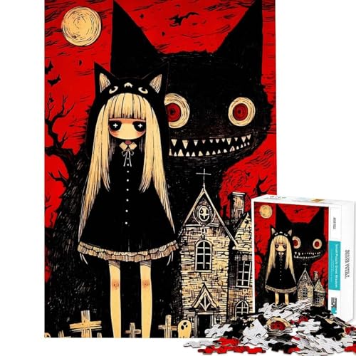 Gothic Girl with Monster And Haunted House Adult Jigsaw Puzzles1000 Pieces Mind Train Fun Premium Laser Cut Quality Rewarding Activity for Rainy Days (38x52cm)
