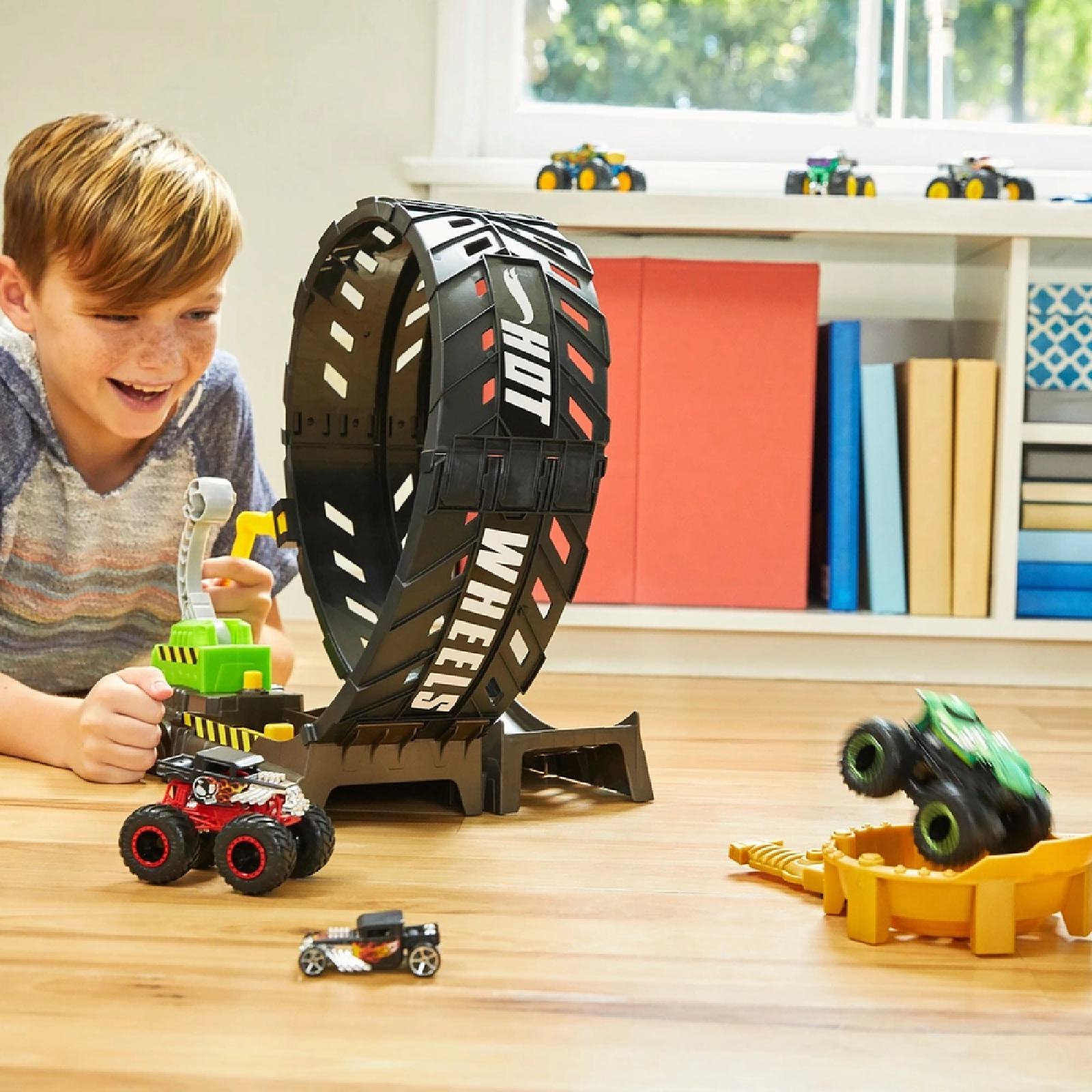Hot Wheels Monster Trucks and 8 Vehicles Epic Loop Amazing Race Track Playset