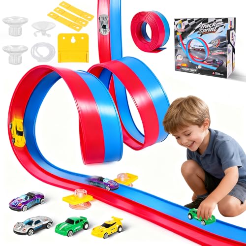Speed Track 5m Flexible Toy Car Track with Storage Bag - Indoor & Outdoor Flexible Diecast Car Monster Truck Race Track for Loops, Jumps, Ramps with Suction Cups for Windows, Doors Ideal for Children