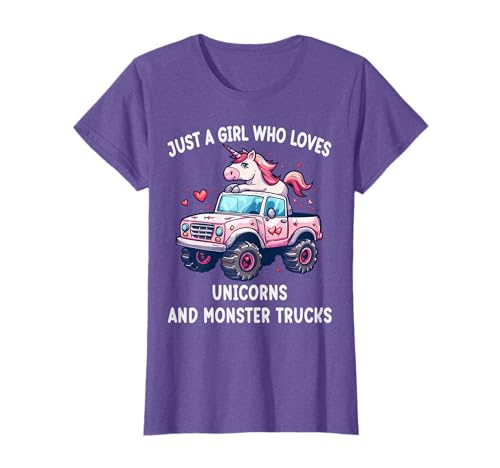 Just a Girl Who Loves Monster Trucks and Unicorns Girls Gift T-Shirt