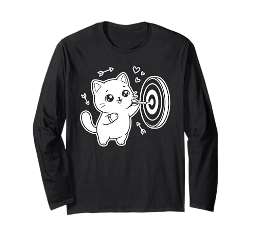 Kawaii Cat Dart Player Sports Club Long Sleeve T-Shirt