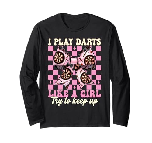 I Play Darts Like A Girl Dartboard Dart Girl Coquette Bow Long Sleeve T-Shirt