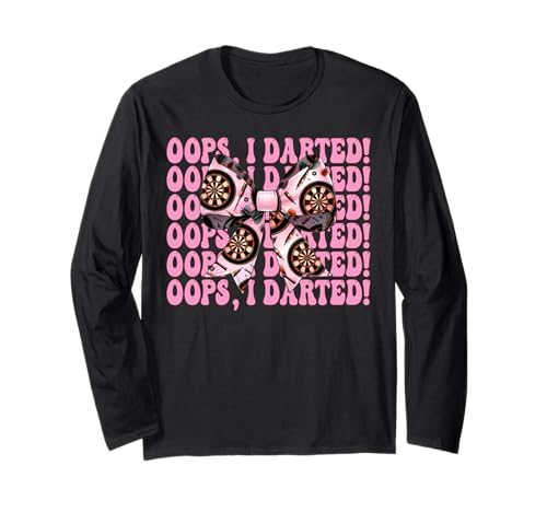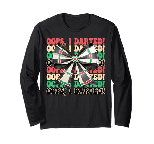 Oops, I Darted! Darts Dartboard Dart Girl Mom Coquette Bow Long Sleeve T-Shirt
