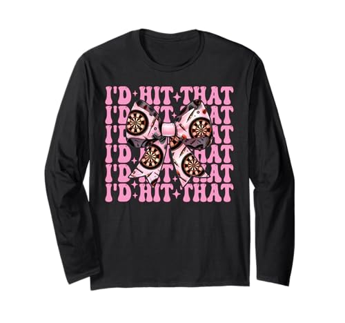 Darts Dartboard Dart Girl Mom Coquette Bow I'd Hit That Long Sleeve T-Shirt