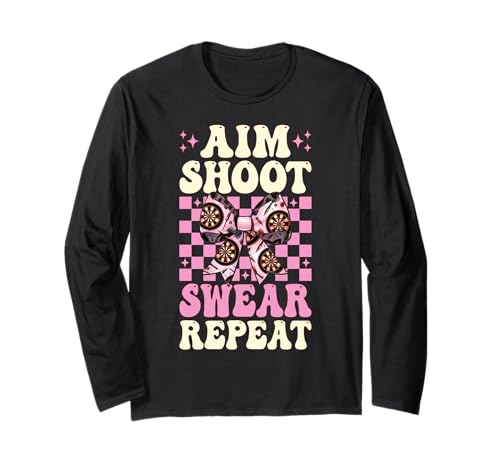 Darts Dartboard Dart Girl Coquette Aim Shoot Swear Repeat Long Sleeve T-Shirt