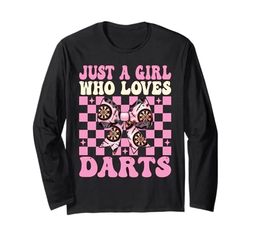 Just A Girl Who Loves Darts Dartboard Dart Girl Coquette Bow Long Sleeve T-Shirt