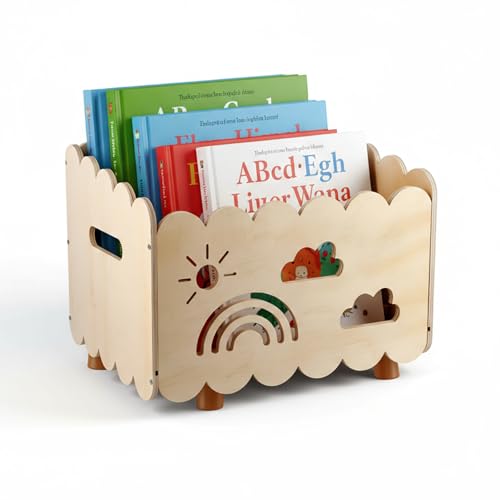 Children's Wooden Bookcase Toddler Book Storage Rack - Montessori Wooden Nursery Bookshelf for Playroom & Bedroom, Kids Floor Display Case, Portable Preschool Reading Box for Kindergarten Classrooms