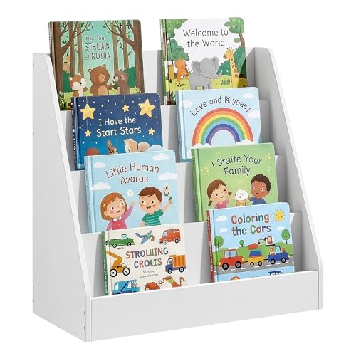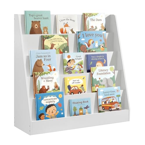SONGMICS Children’s Bookcase, 4-Tier Montessori Bookshelf, Front-Facing Picture Book Display, for Kids’ Room, Reading Nook, 30 x 60 x 60 cm, Cloud White GKR074WZ01
