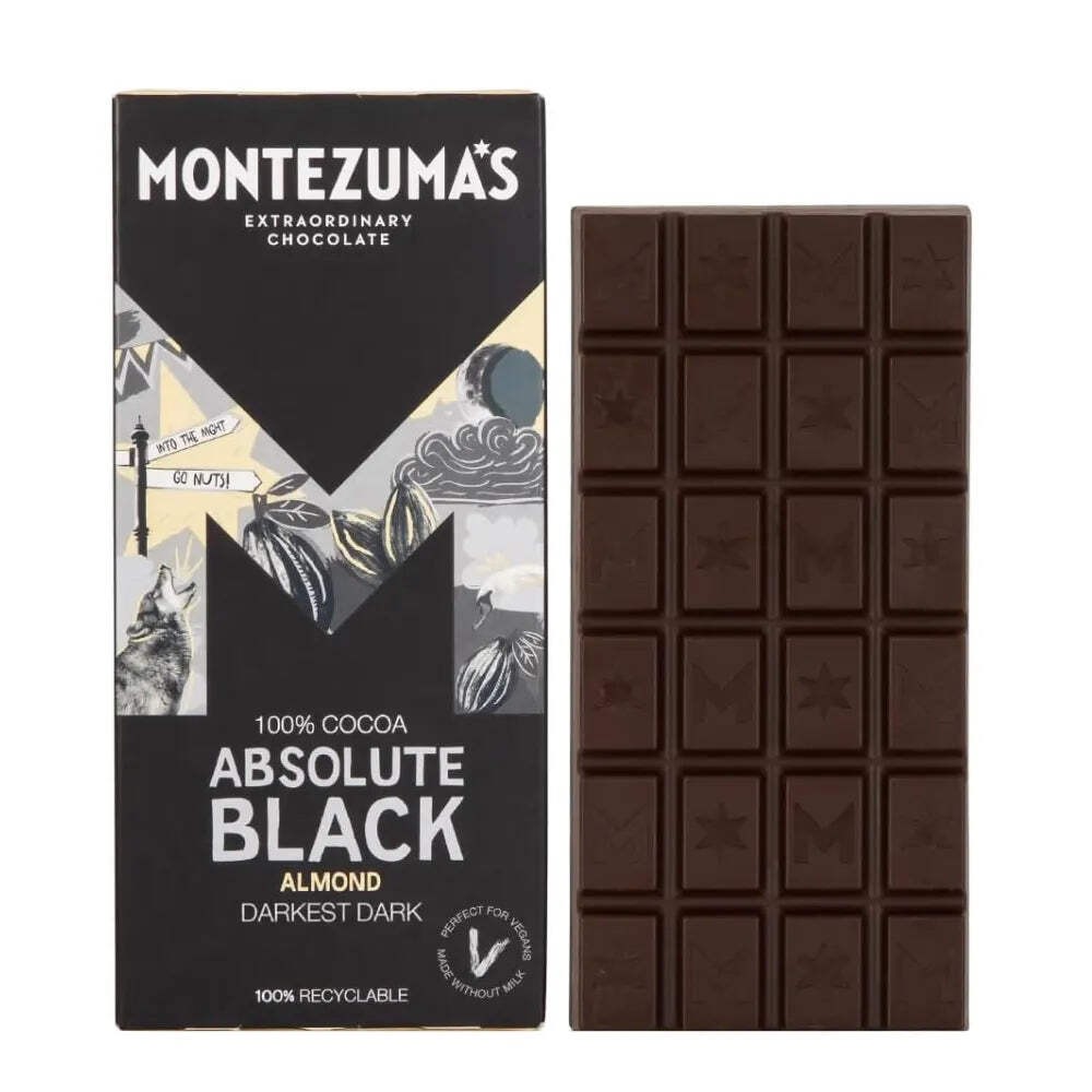 Montezuma Absolute Black 100% Dark Chocolate Almonds Vegan No Sugar