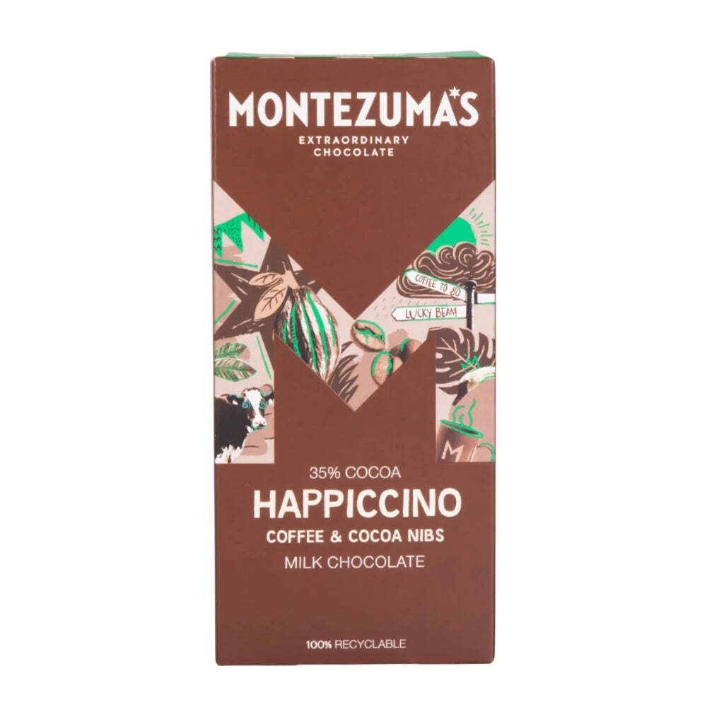 Montezuma Happiccino Milk Chocolate Coffee & Cocoa Nibs 12 x 90g