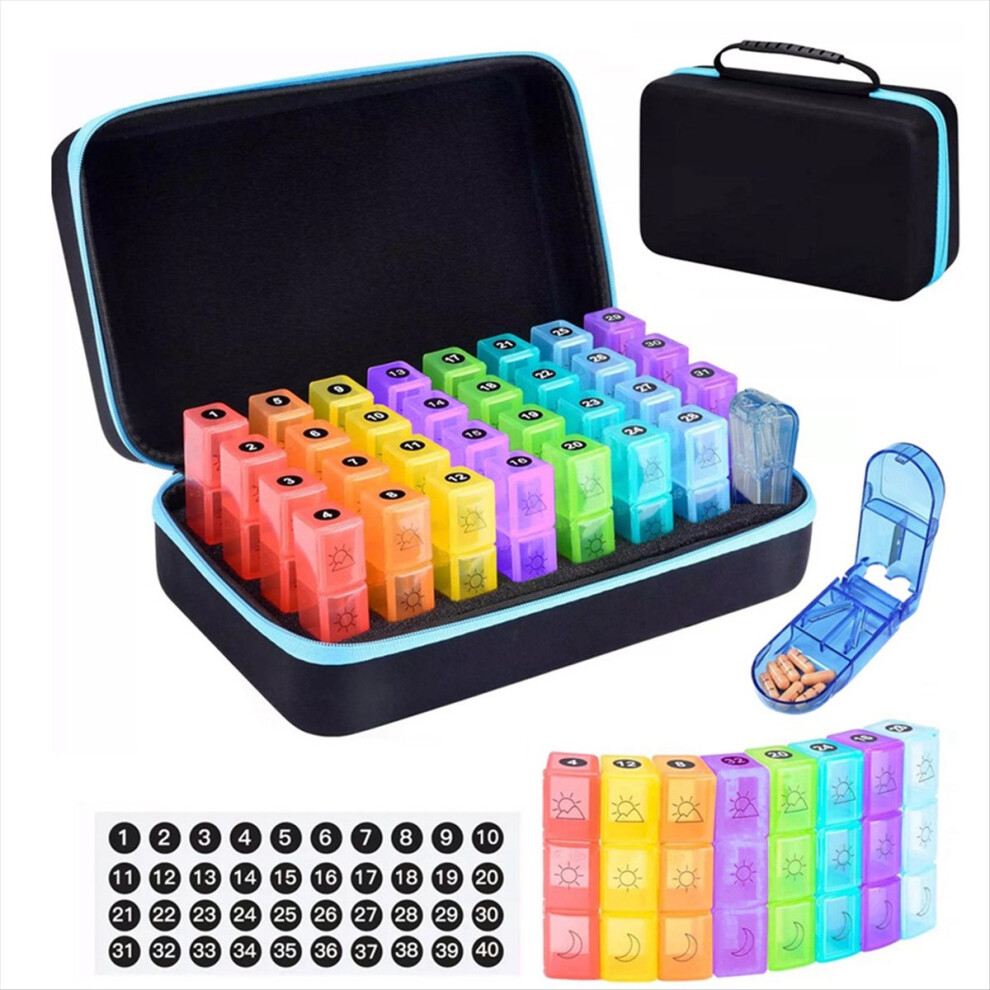 5 Colors Large Travel Pill Cases Portable 7-Day Medicine Box Case Tablet Storage Monthly Pill Organizer Case Pill Storage Box