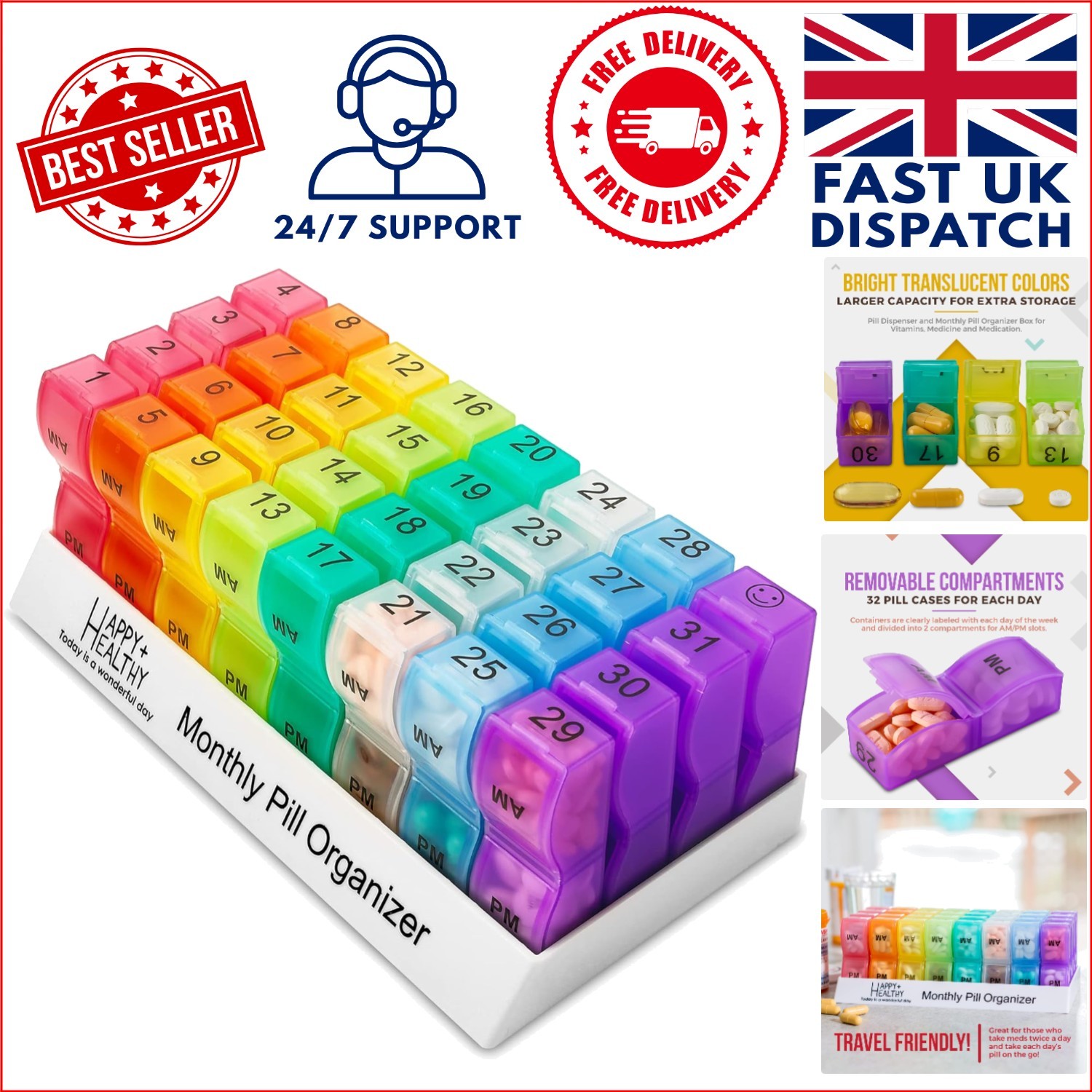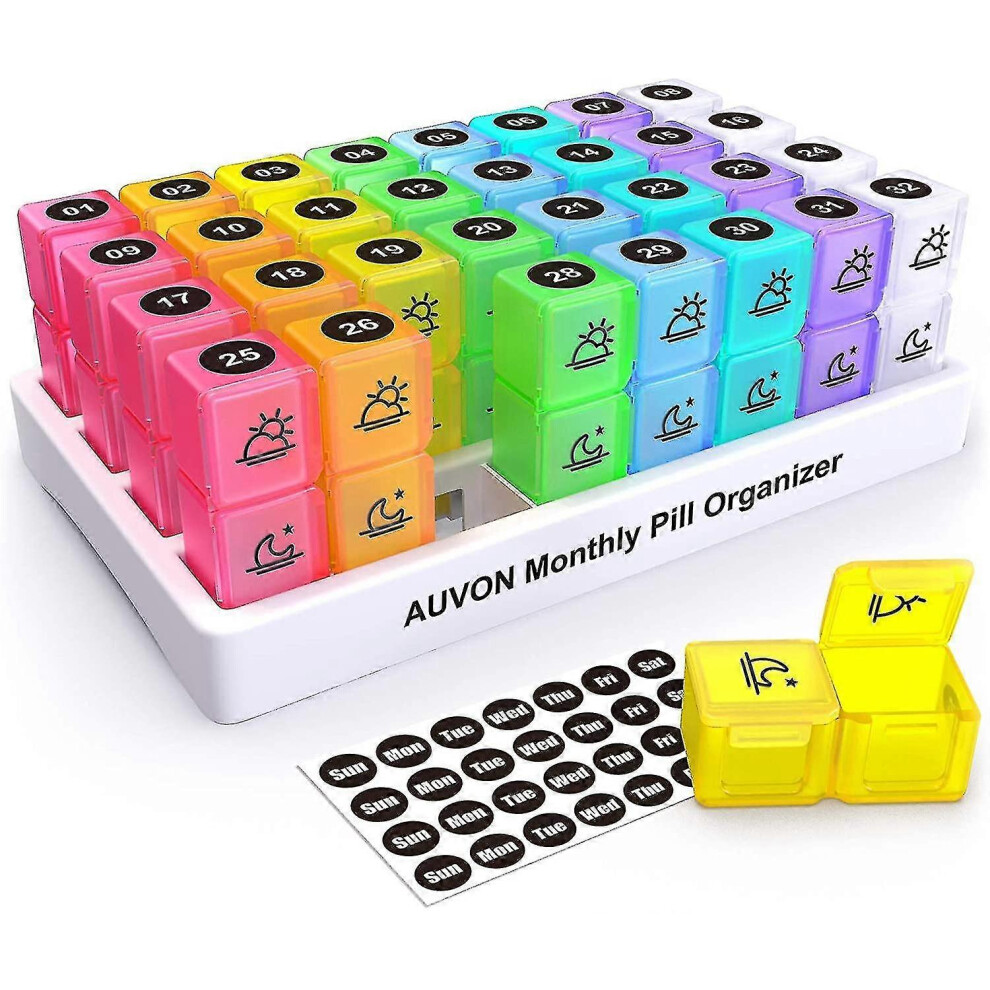 2X Monthly Weekly Pill Organizer Boxes-AM/PM Daily,31 32 Compartments Vitamins Medicaiton Medicine Reminder