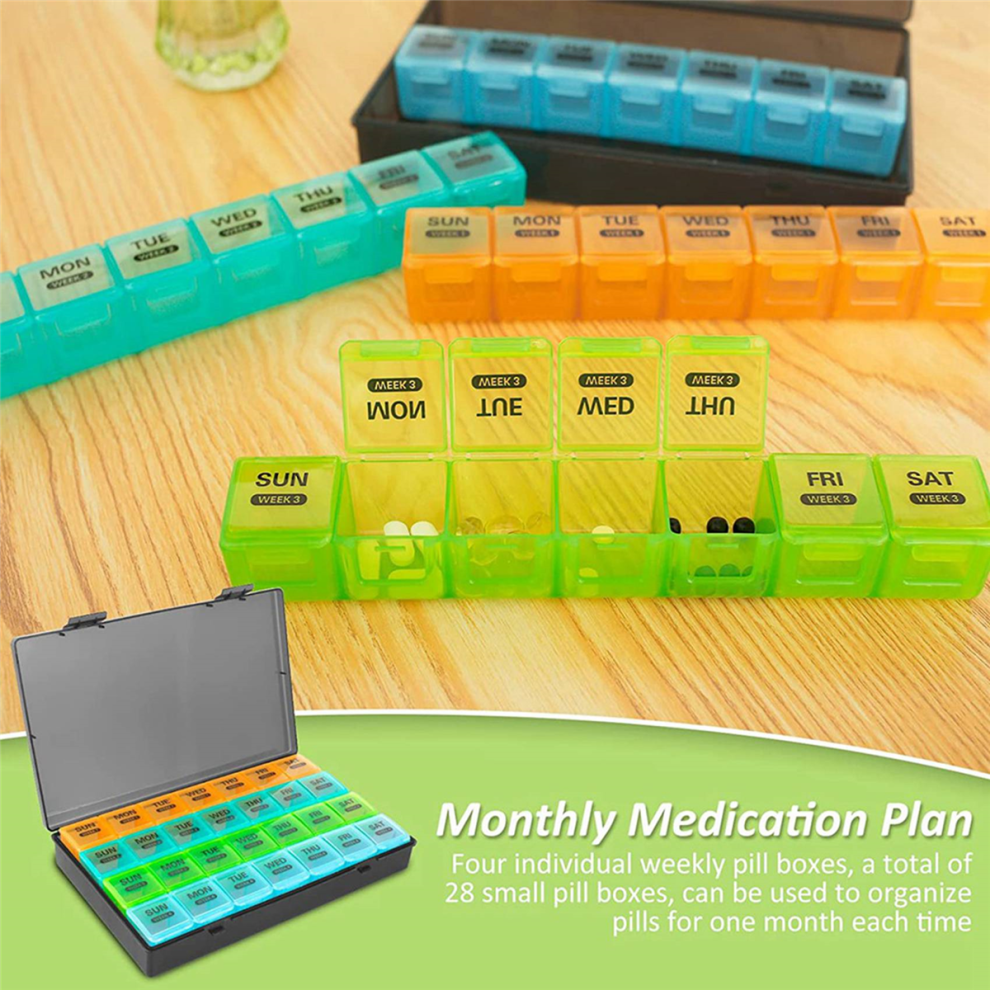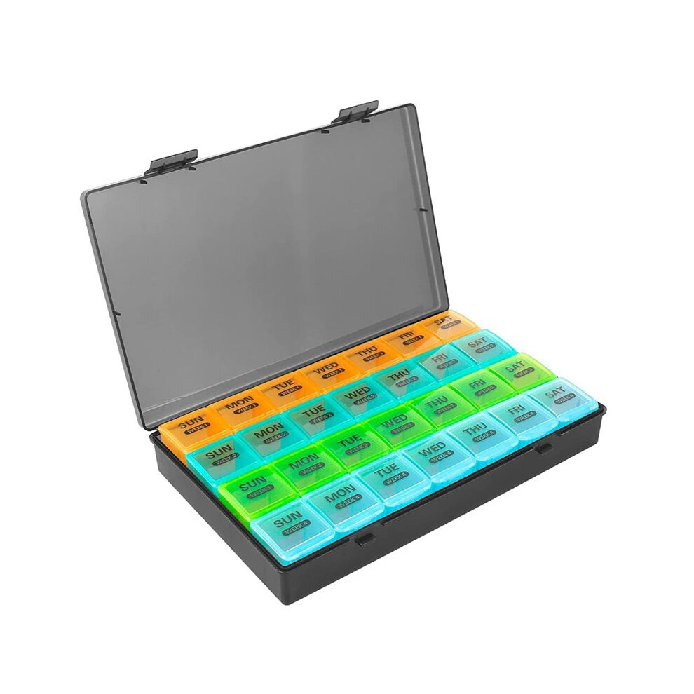 (As show, One size) Monthly Pill Organizer 28 Day Pill Box Organizerd By Week, Large 4 Weeks Pill Cases with Dust-Proof