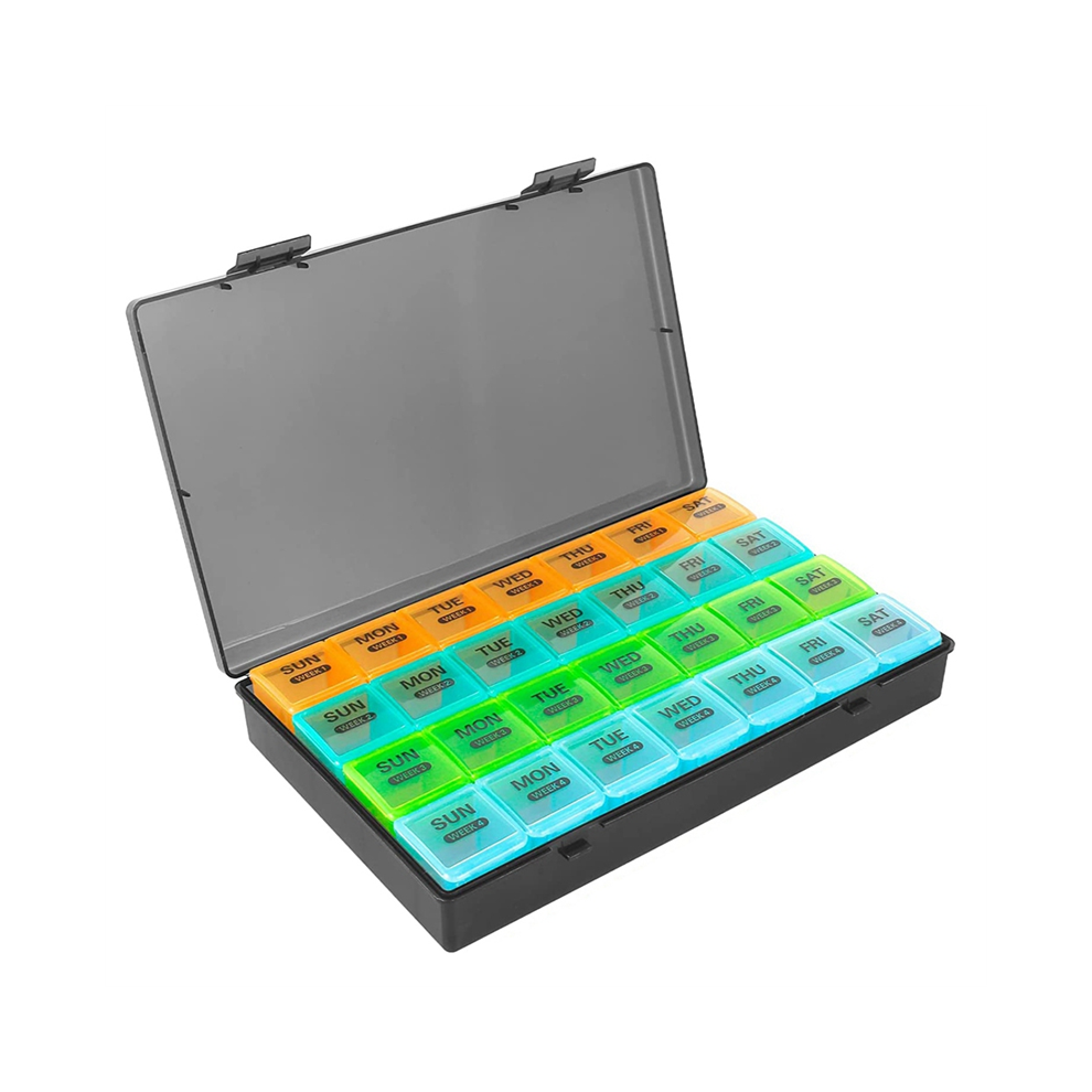 4Pcs Colorful 21 Grids Portable Monthly Pill Organizer