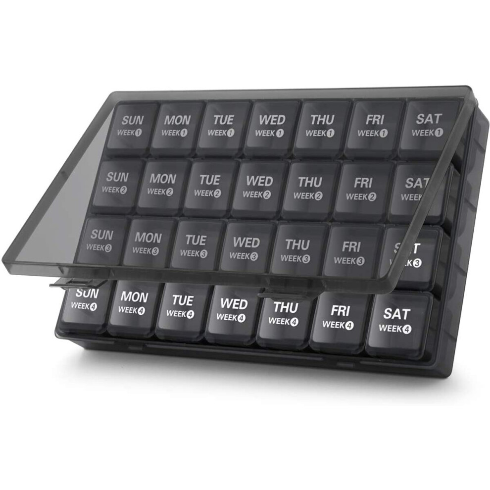 Monthly Pill Organizer 28 Day Pill Box Organizerd by Week, Large 4 Weeks One Month Pill Cases with Dust-Proof Container for Pills/Vitamin/Fish