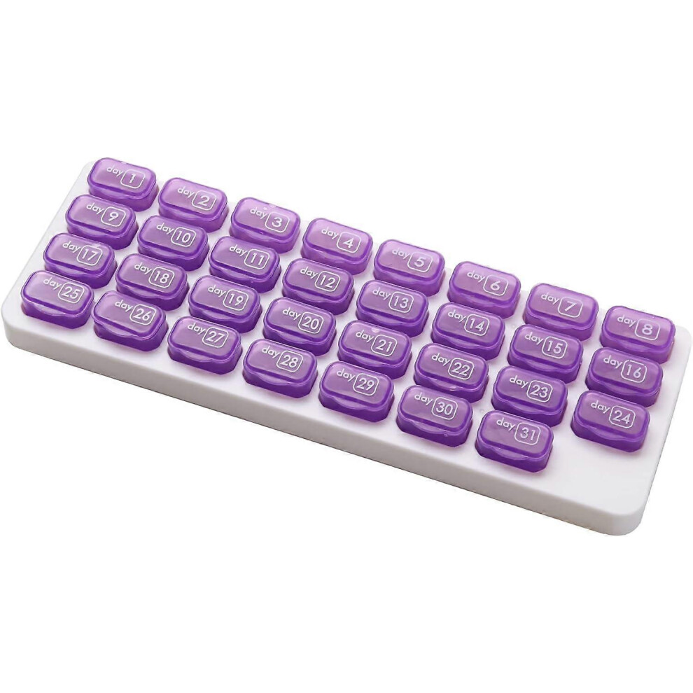 (As show, One size) Monthly 31 compartments Pill Organizer Day Pill Organizer for Medicine Vitamin Holder Container (Purple)