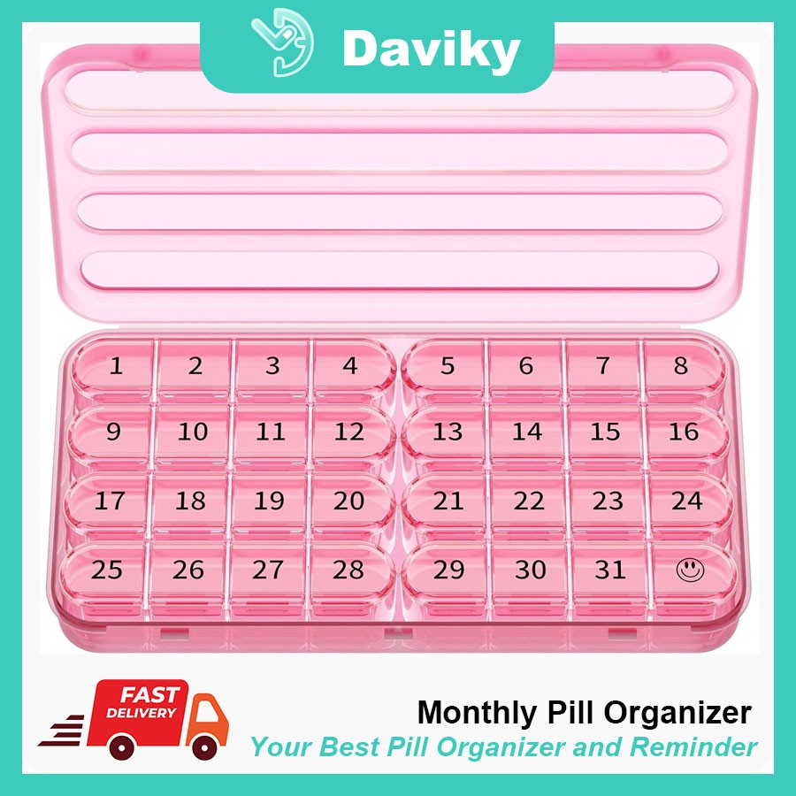 Daviky Monthly Pill Organizer 1 Time a Day, 30 Day Pill Box Organizer Once a Day
