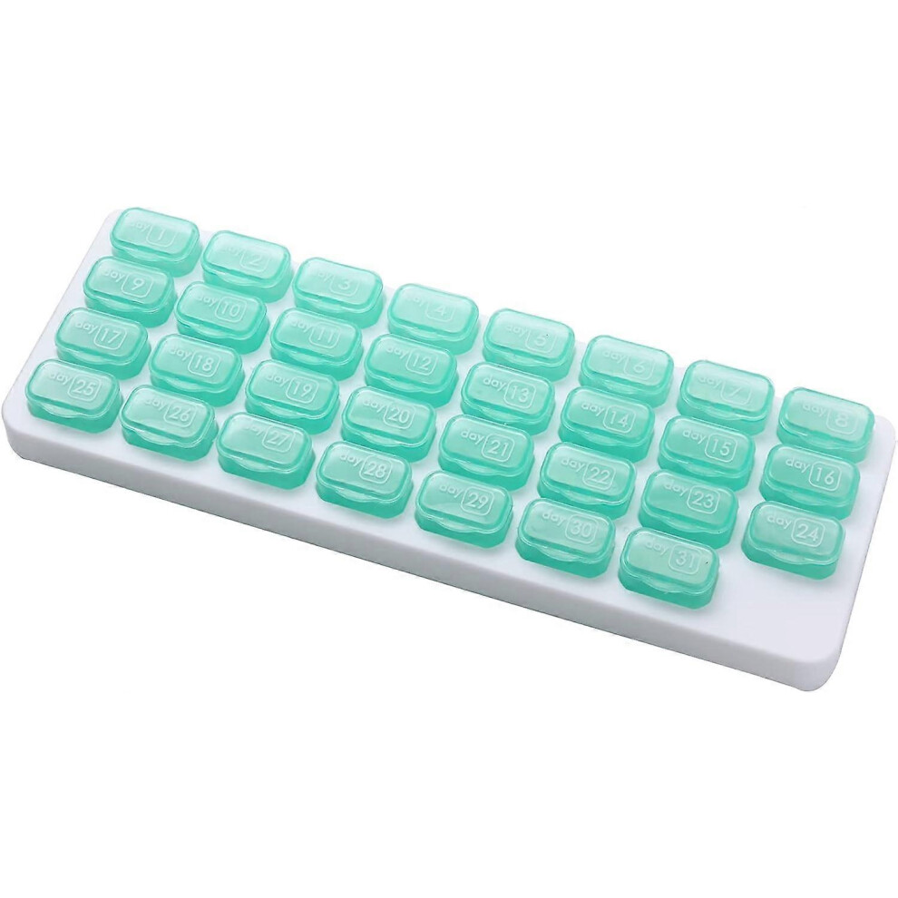 (As show, One size) Monthly 31 compartments Pill Organizer Day Pill Organizer for Medicine Vitamin Holder Container (Green)