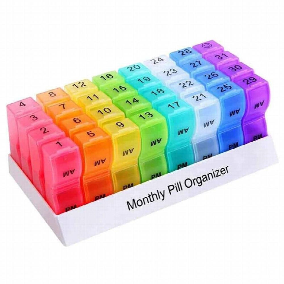 Monthly Pill Organizer 31 Compartments, 1 Per Day, 4 Week Full Month 31 Pill Organizer
