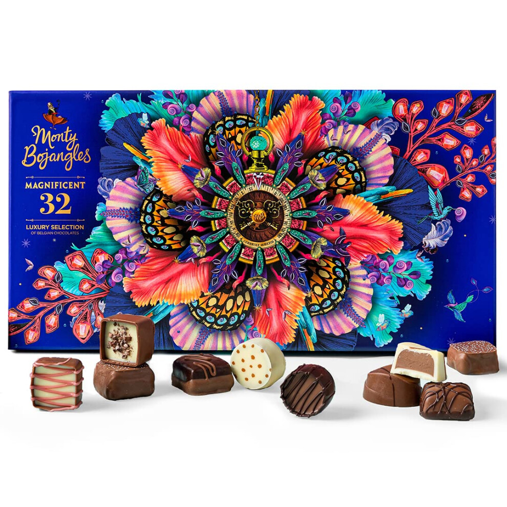 Monty Bojangles Magnificent Luxury Belgian Chocolate Selection Box | Gift Box - Assortment of 32 Milk, Dark and White Belgian Chocolates, 452g
