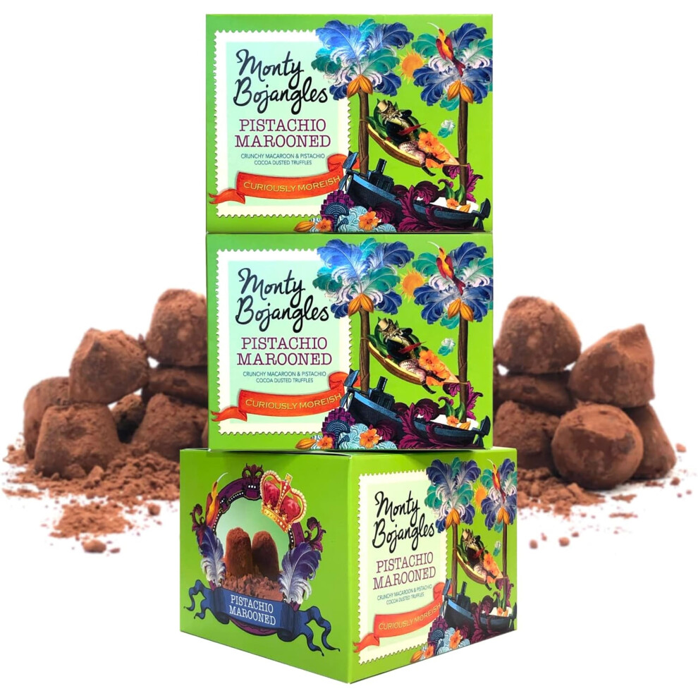 Monty Bojangles Pistachio Marooned Cocoa Dusted Chocolate Truffles (3 x 100g Chocolate Gift Box) - Macaroon & Pistachio Flavoured Chocolatey Truffles