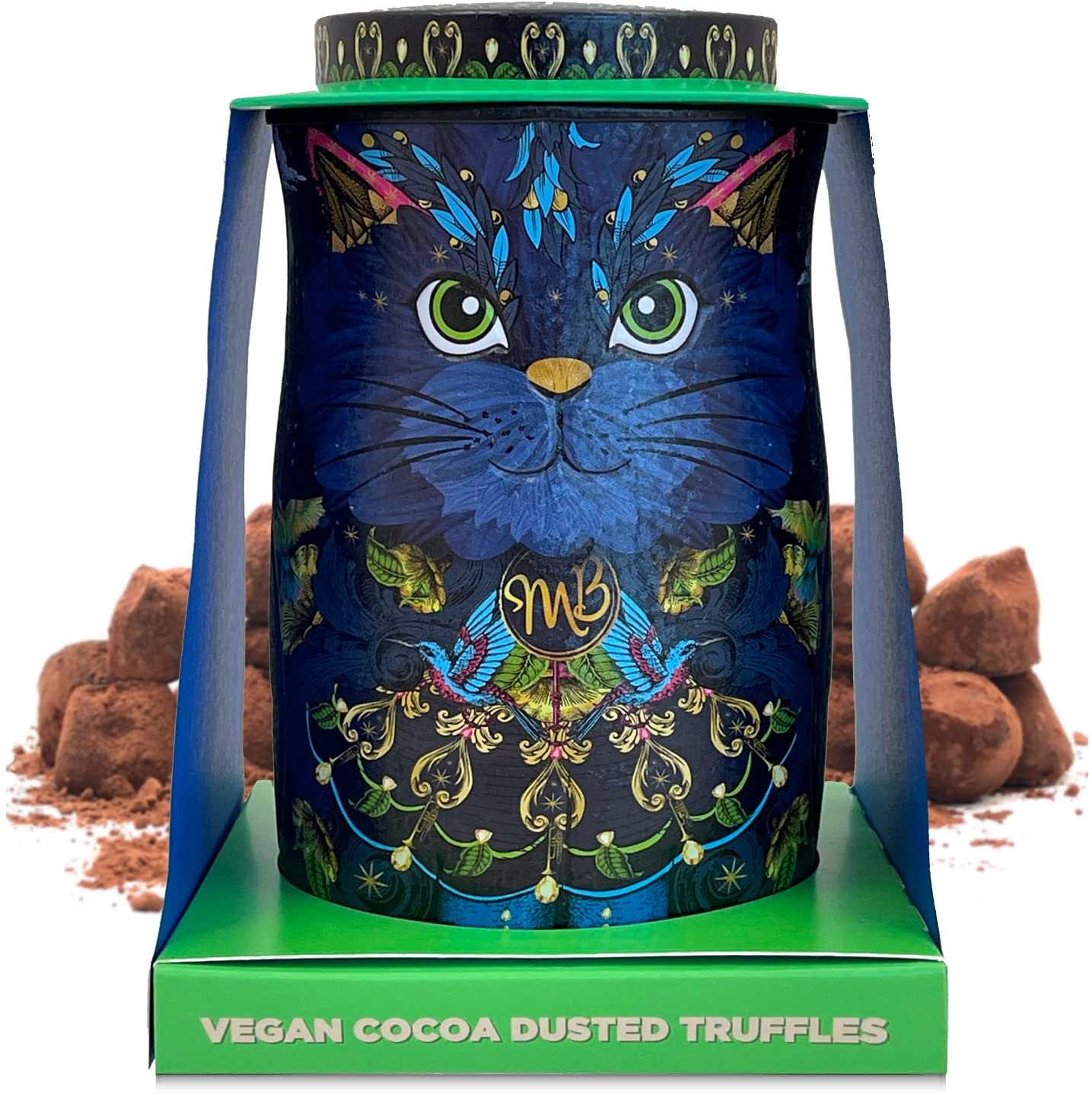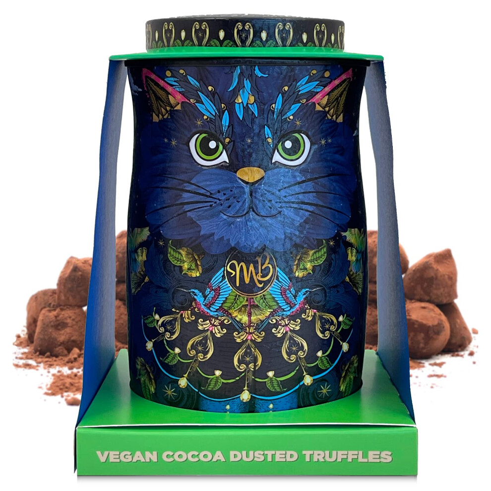Monty Bojangles Vegan Cocoa Dusted Chocolate Truffles Cat Tin(Midnight Prince-135g)Cocoa Nib Night Flavoured Luxury Vegan Chocolate