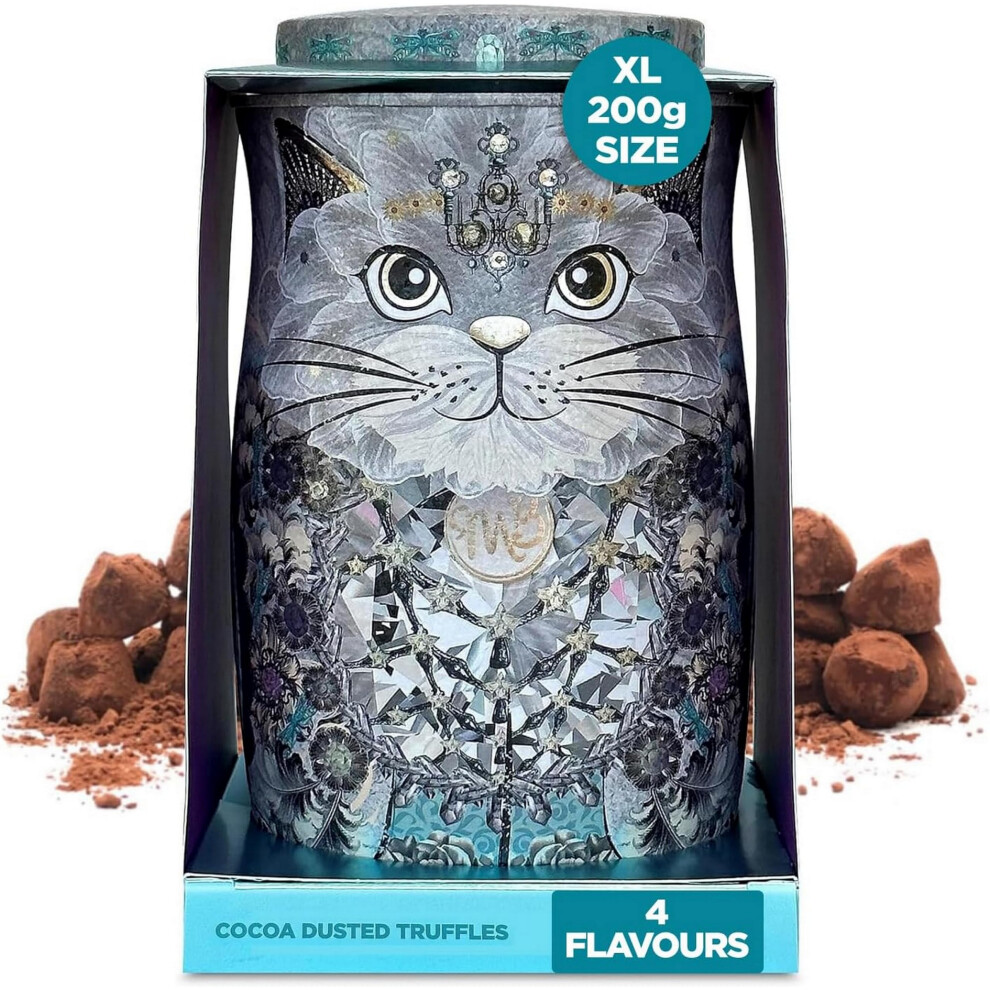 Monty Bojangles Cocoa Dusted Chocolate Truffles Cat Tin (Diamond Empress - 200g) Four Flavours In One, Luxury Chocolatey Truffles - Collectable Cat Tin, Truffles Chocolate Gift Box With Bespoke Design