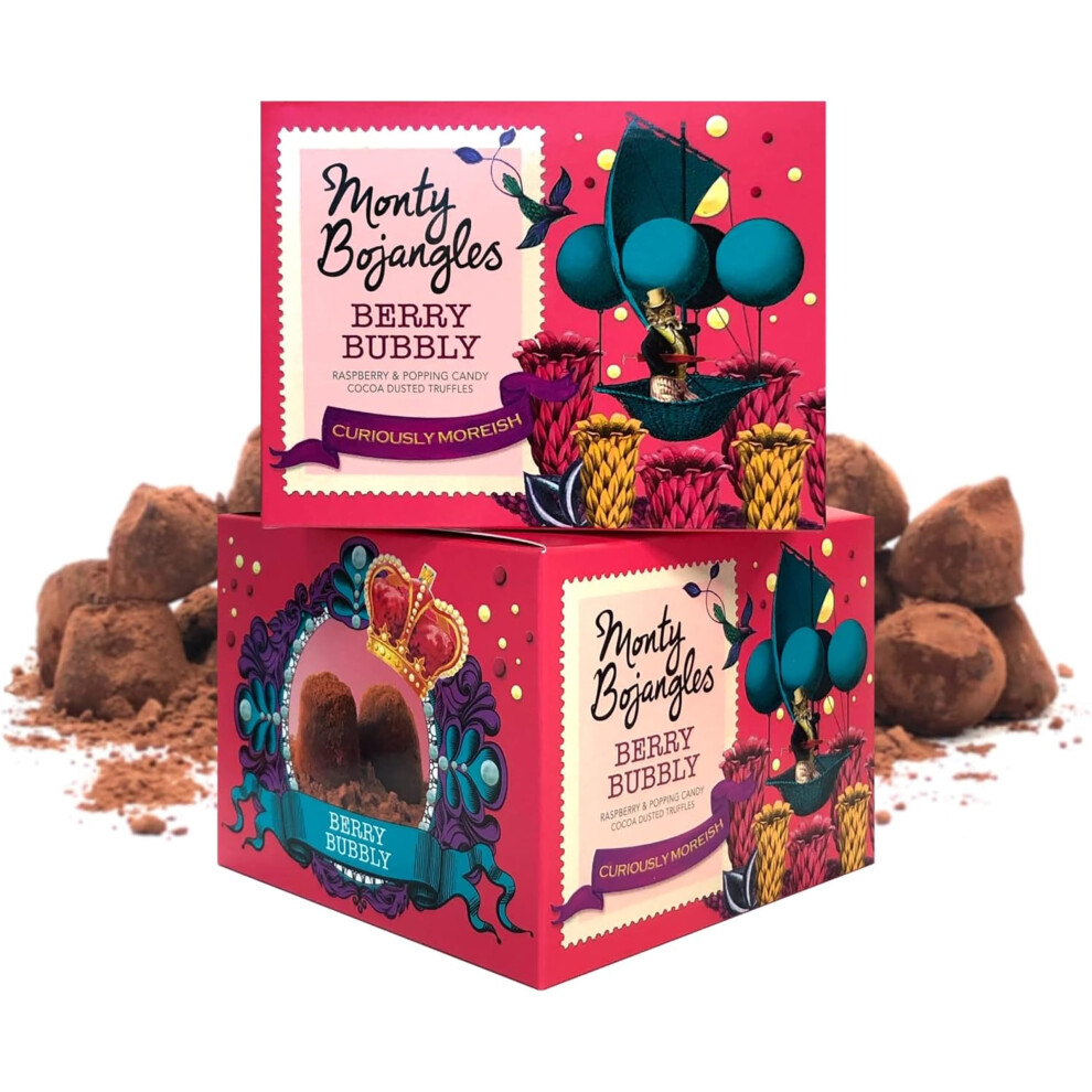 Monty Bojangles Berry Bubbly Cocoa Dusted Chocolate Truffles (2 x 150g Chocolate Gift Box) - Raspberry & Popping Candy Flavoured Chocolatey Truffles -