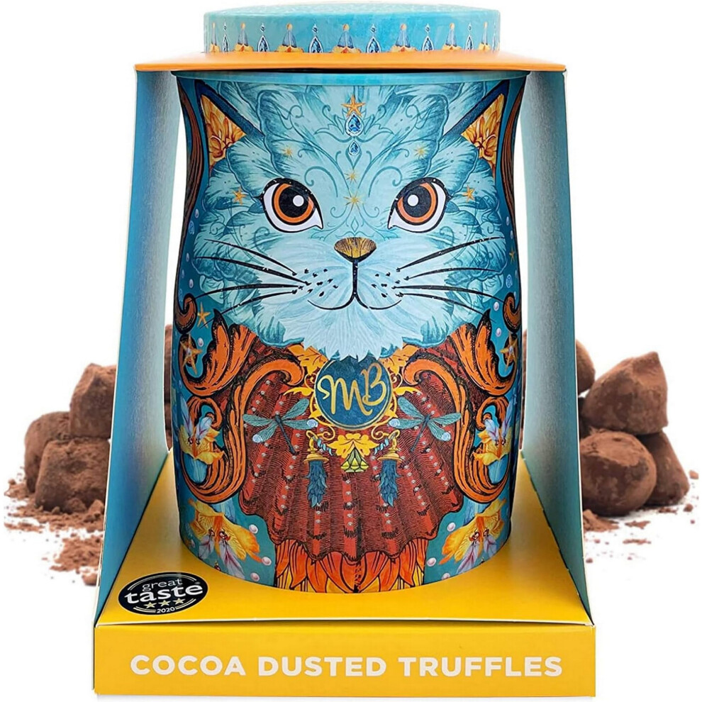 Monty Bojangles Spirit Blue Cocoa Dusted Chocolate Truffles Cat Tin (135g) - Coconut Crush Flavoured Luxury Chocolatey Truffles - Collectable Cat Tin,