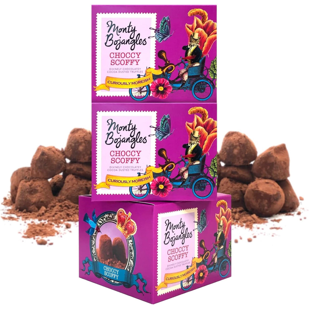 Monty Bojangles Choccy Scoffy Cocoa Dusted Chocolate Truffles (3 x 100g Chocolate Gift Box) - Divine Chocolate Flavoured Chocolatey Truffles - Award