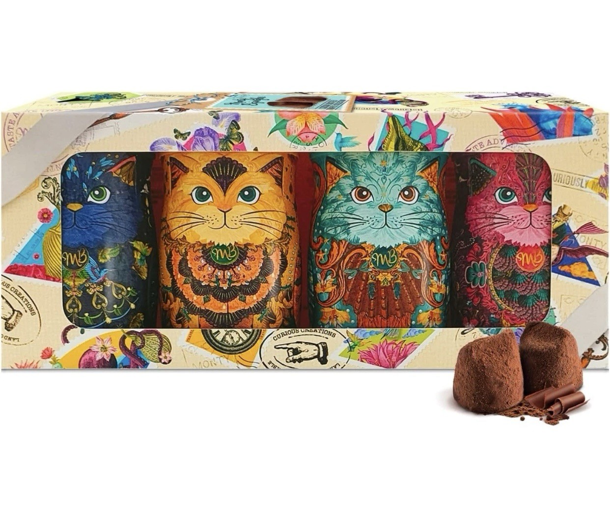 Monty Bojangles Kit-Tins Cocoa Dusted Chocolate Truffles Gift Set (4 x 36g) Four Flavours In One, Luxury Chocolatey Truffles - Collectable Cat Tins, Truffles Chocolate Gift Box With Bespoke Design