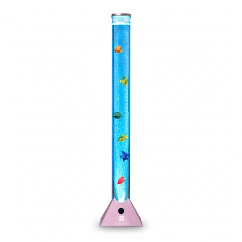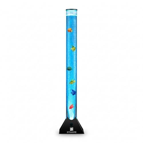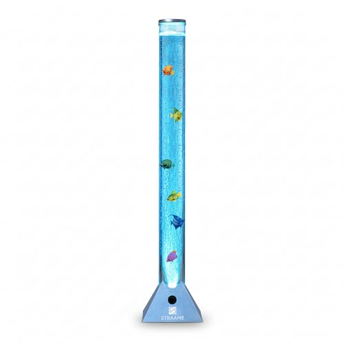 Straame 90cm Bubble Fish Lamp, Colour Changing LED Light, Sensory Room Decor & Mood Lamp, Includes Artificial Tropical Fish, Adjustable Bubble Tube, Plug-in Power, Blue Base