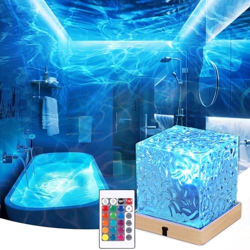 Rechargeable Shower Light 16 Color Changeable Ocean Wave Galaxy Projector with Remote Northern Lights Mood Cube Lamp Waterproof Shower Lamp Flame Water Lights for Bathroom Christmas Gifts for Women