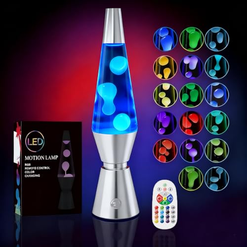 LED Liquid Motion Lamps 13.5''Colour Changing Lamp White Liquid & Blue Wax Lamps for Adults Kids Gift for Christmas Birthday Mood Light for Bedroom Home Decor