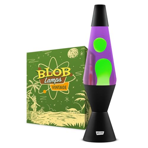 Blob Lamps® Liquid Motion Lamp Vintage Green Wax Purple Liquid Matt Black Metal Base & Cap 14.5” Mood Lamp Light