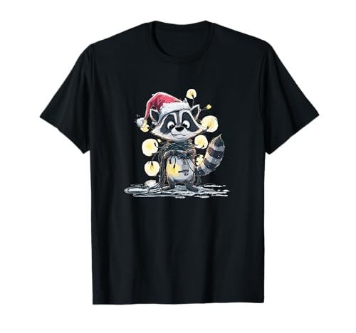Funny Raccoon in Christmas Mood with Fairy Lights T-Shirt