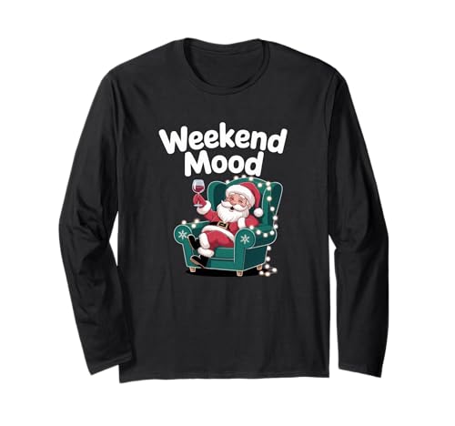 Weekend Mood Santa Drink Christmas Xmas Lights Funny Long Sleeve T-Shirt