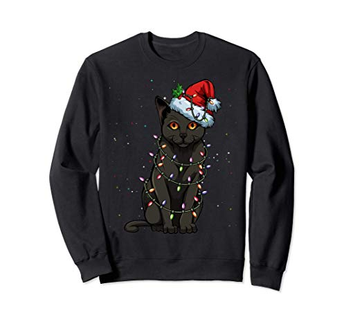 Funny Black Cat Lover Christmas Xmas Eve Lights Mood Present Sweatshirt
