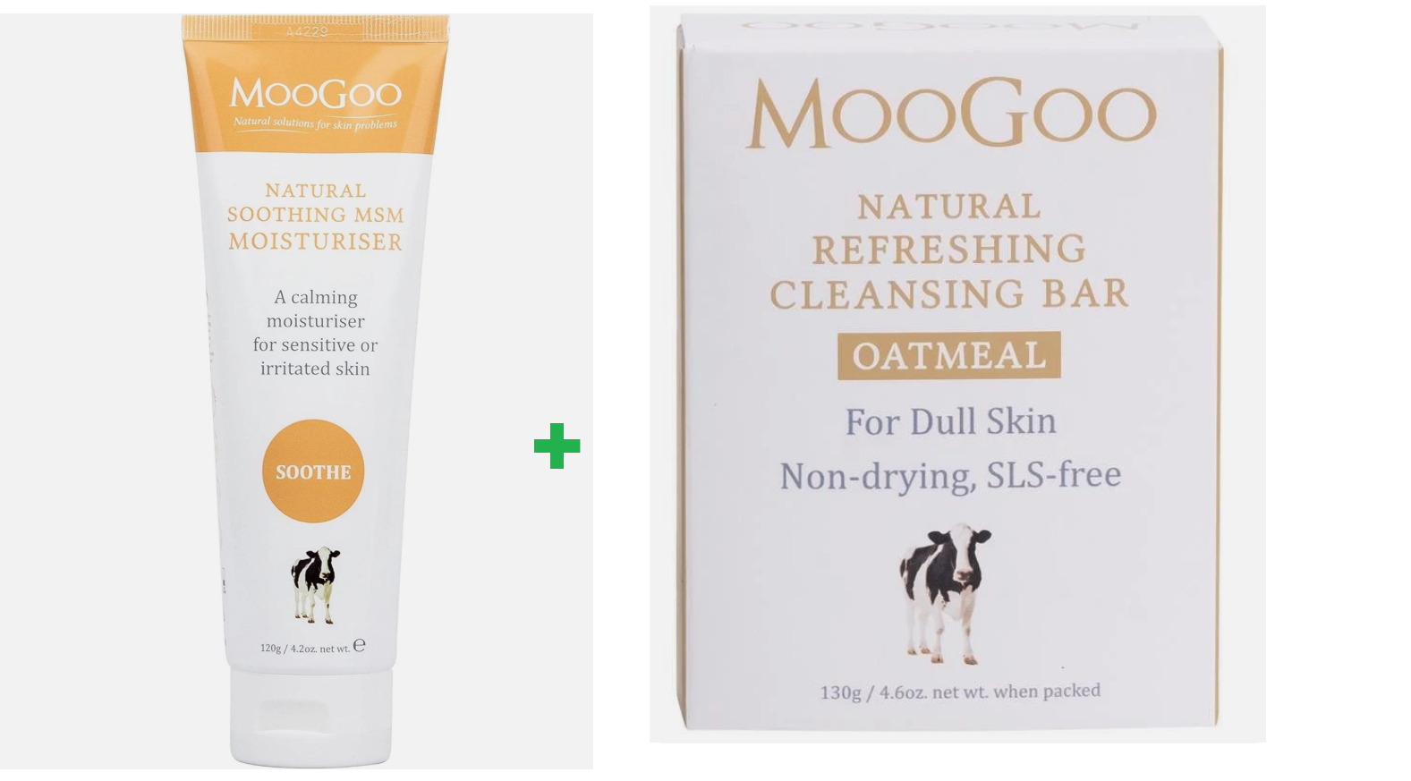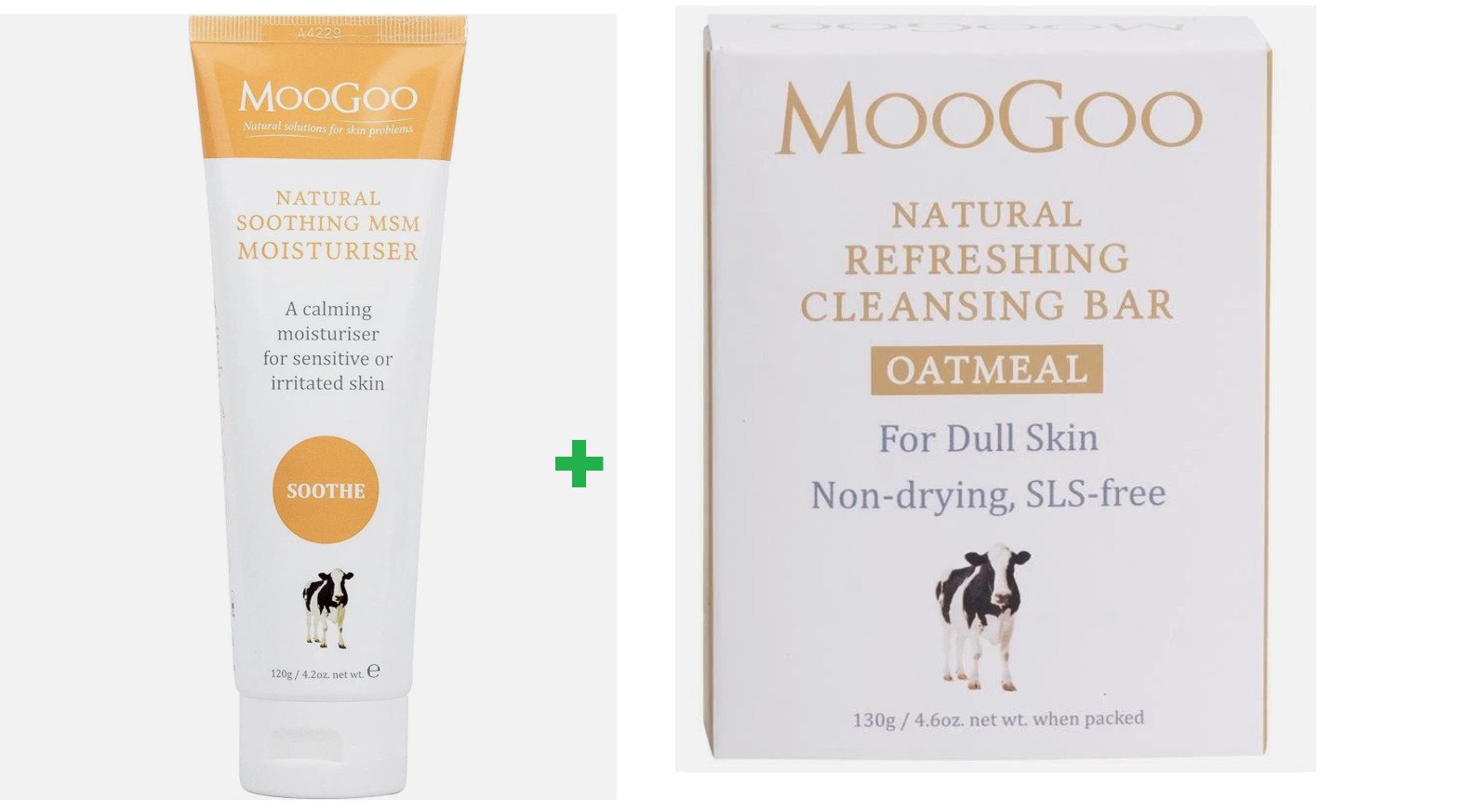 MooGoo Soothing MSM Moisturiser - Calming Face & Body Moisturiser + bar soap
