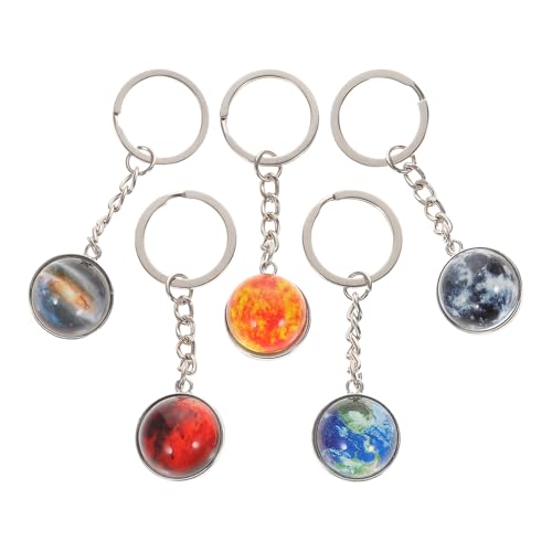 5Pcs Solar System Planet Keychain Set with Noctilucent Glass Balls – Earth, Mars, Sun, Moon Key Ring Bag Pendant for Boys Novelty Accessories