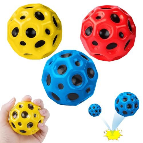 3 PCS Moon Balls, Extreme Space Balls for Kids, Bounce Ball, Ultra High Bouncing Ball & Sounds, All Ages Extreme Bounce and Fun, Perfect for Active Play and Outdoor Games